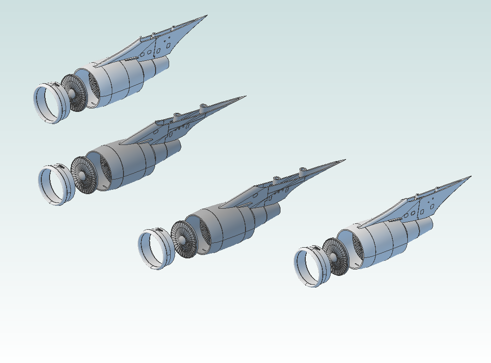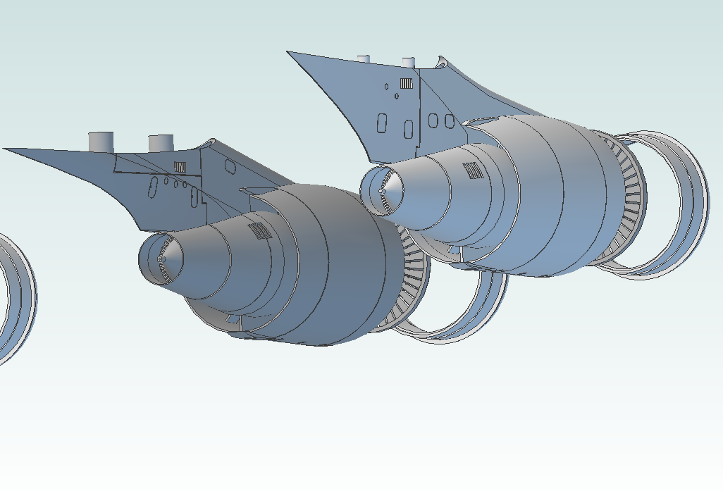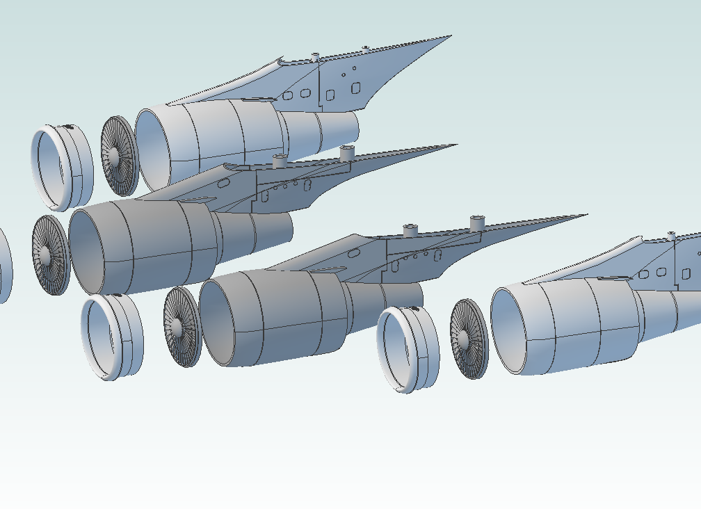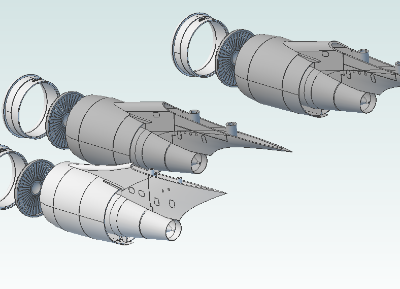 Big super-detailed engines with pylons appropriate to the 747-400. Parts feature recessed panel lines, individual fan blades on the N1 stage, and complete internal detail (turbine faces, guide vanes, etc). The parts are ultra-light-weight in comparison to the kit engines and to cast resin so they wont cause wing droop in your finished model.