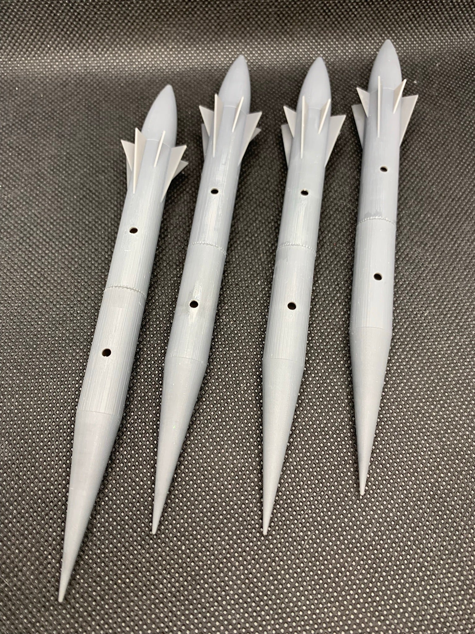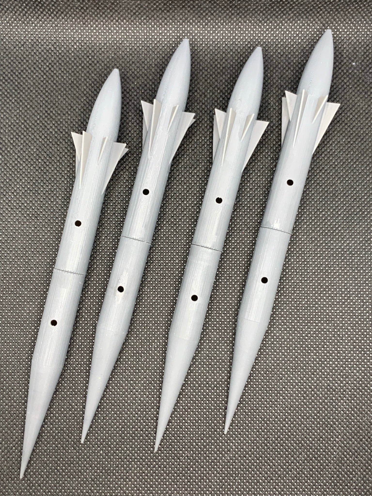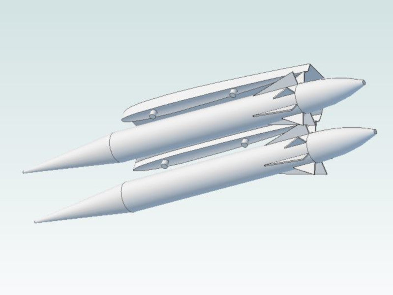 Big set of GAM-87 Skybolt missiles and pylons for the B-52H. Pylons and missiles are hollow and lightweight. Directly rescaled from the 1:72 set, these can be used with the HPH or Sanger B-52 kits.