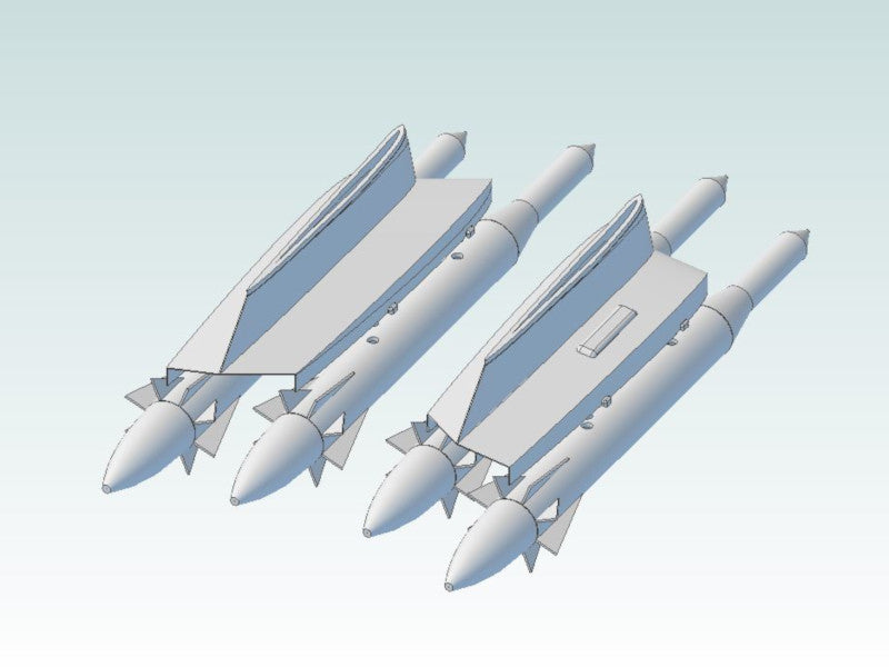 Big set of GAM-87 Skybolt missiles and pylons for the B-52H. Pylons and missiles are hollow and lightweight. Directly rescaled from the 1:72 set, these can be used with the HPH or Sanger B-52 kits.