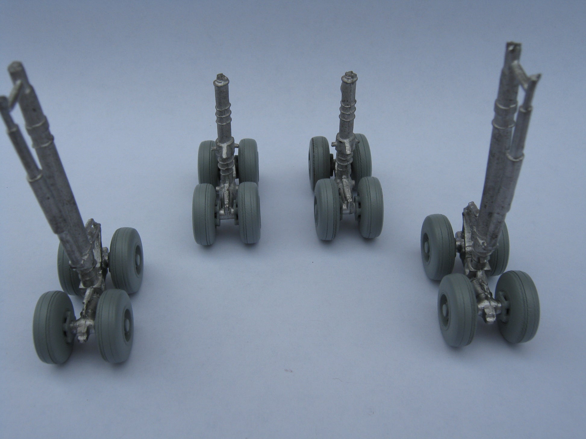 Super detailed wheels (49 x 17 inch tire size) with brake puck assemblies and circumferential treads. Drop-in replacements for the soft metal wheels included with the kit. These are also the correct wheels for modeling the VC-25A Air Force One.