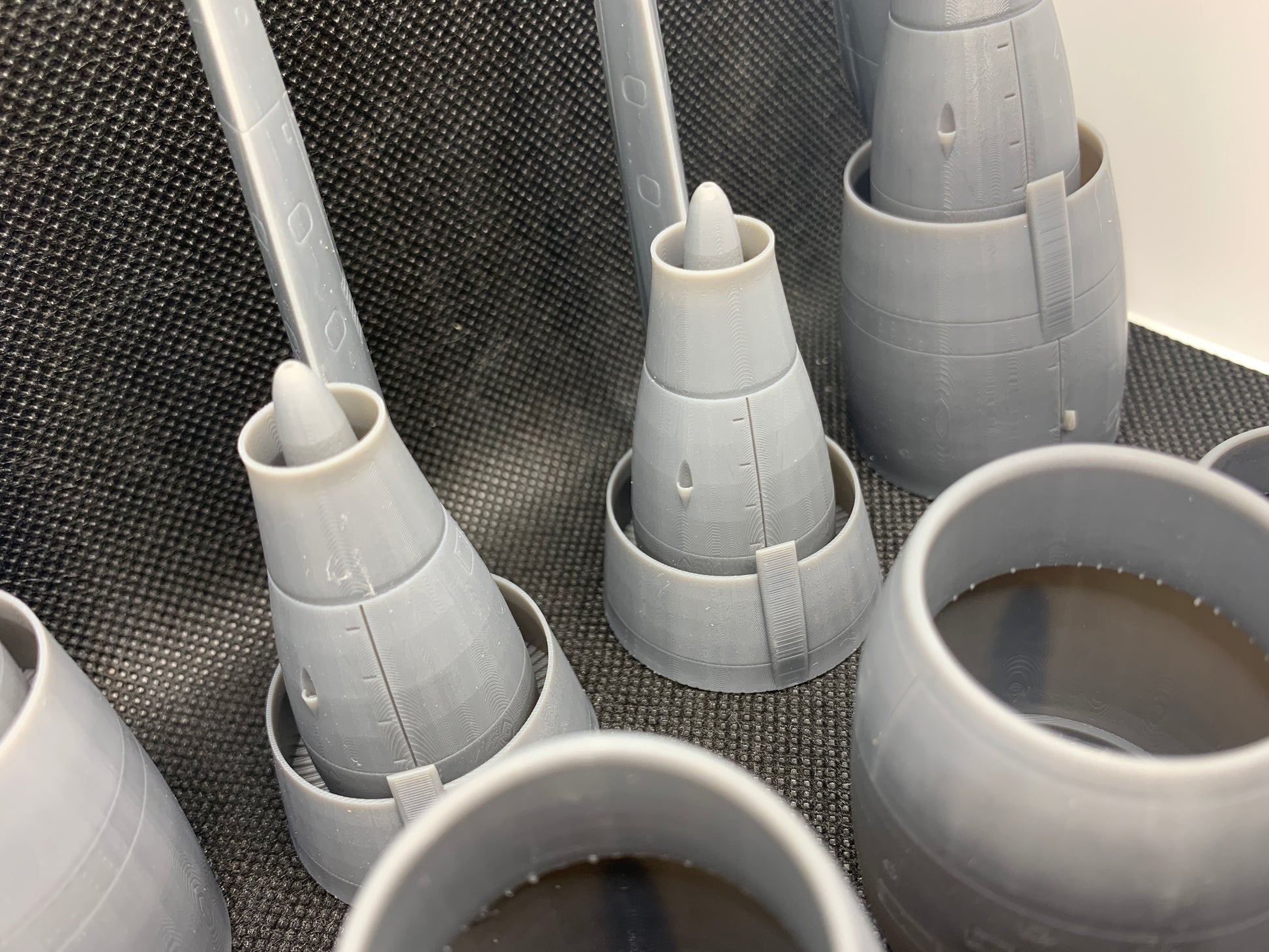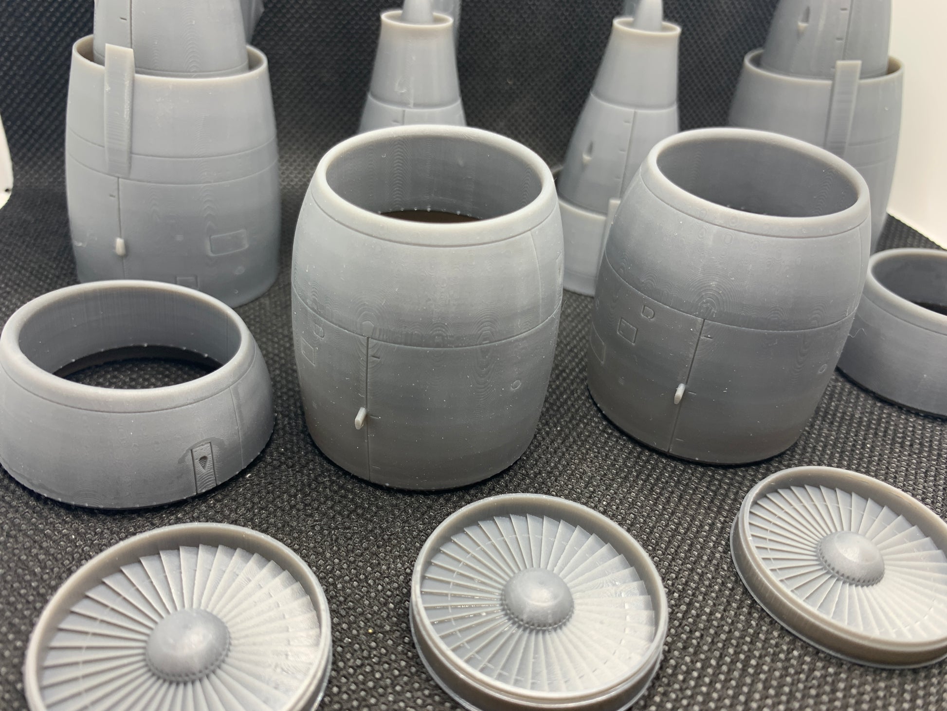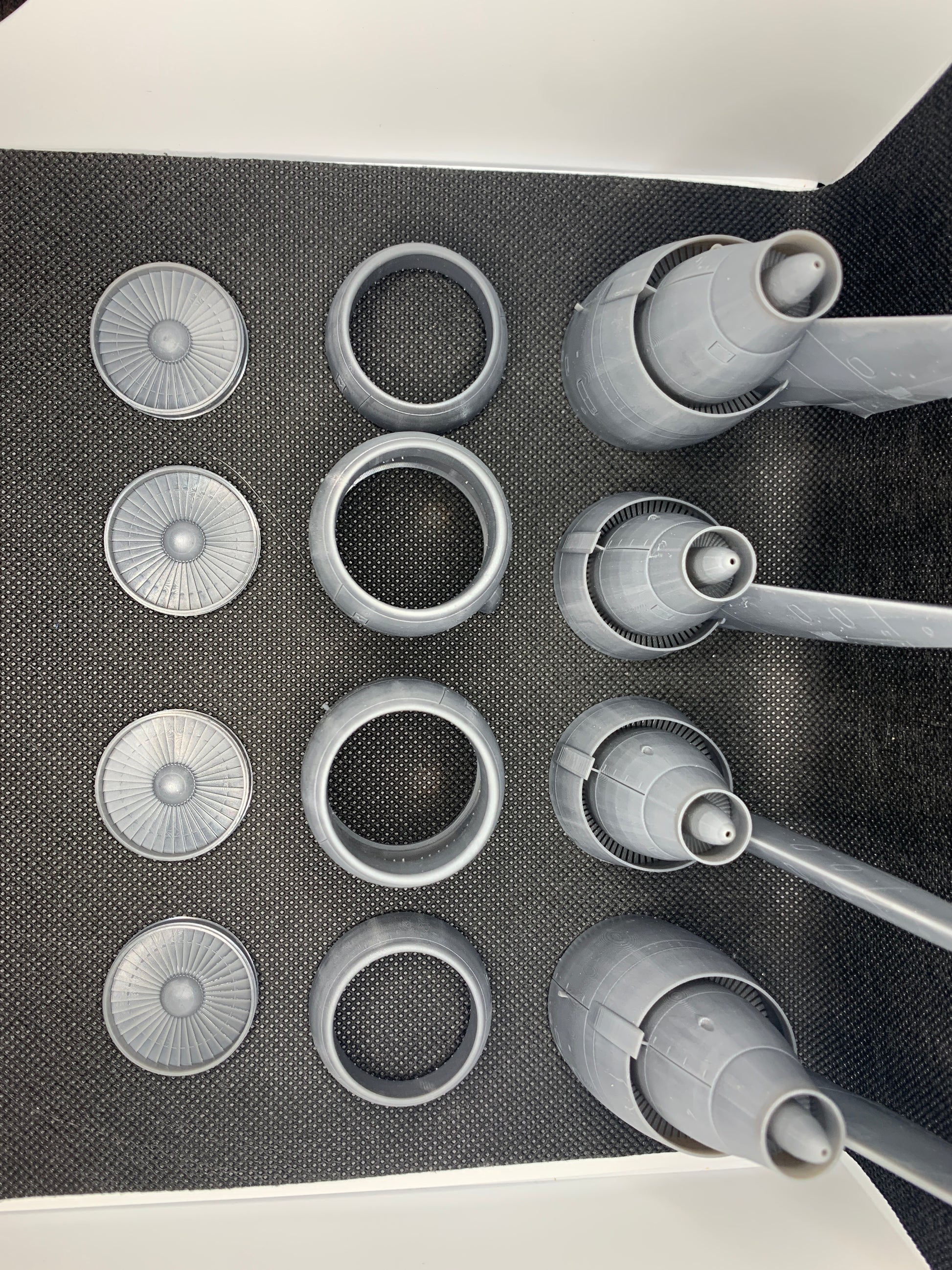 Parts feature recessed panel lines, individual fan blades on the N1 stage, and complete internal detail (turbine faces, guide vanes, etc). The parts are ultra-light-weight in comparison to the kit engines and to cast resin so they wont cause wing droop in your finished model.