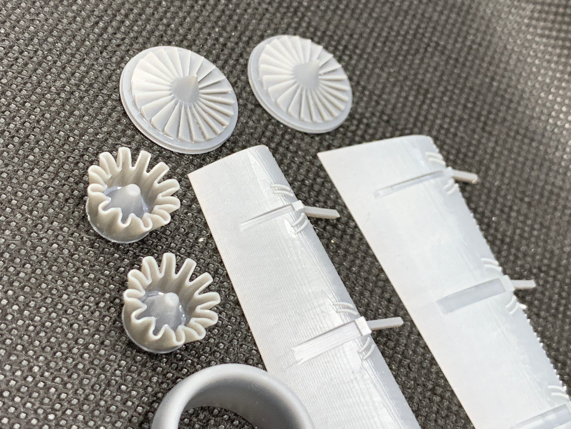 Detailed engine inlets, fans, exhaust plenum, and extended flaps for your 1:72 Welsh Models G-IV. Can also work with the RVHP kits. Choose your flap position, takeoff or landing settings.