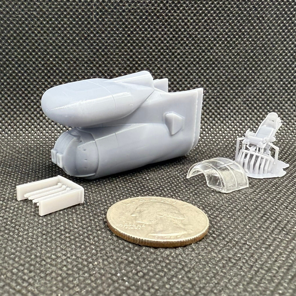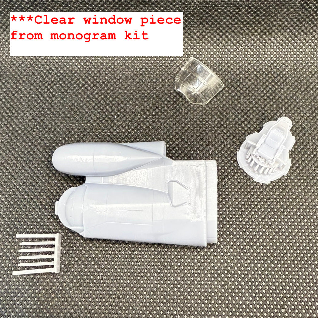 Includes everything you need to convert your Monogram B-52 to the RB-52B variant. Set of 2x 1000g wing fuel tanks, 8x B-52B-style wheels, and RB-52B tailcone. You'll need to use the clear gunner's window from the Monogram kit with the tailcone.